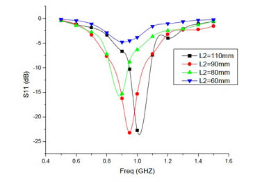 Inverted-L antenna's immunity to the FGP has been tested. Clearly, with the distance between the antenna and the FGP and the size of the FGP decrease, the impedance match condition deteriorates. This is mainly due to the fact that as the ground plane becomes smaller, the image of the inverted-L becomes incomplete, which subsequetly influence the performance significantly.